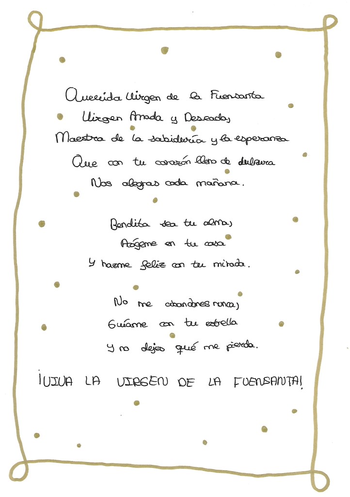 Desde la Junta de Gobierno de la Cofradía de Nuestra Señora la Santísima Virgen de la Fuensanta Coronada damos las gracias a los profesores y alumnos junto con sus padres, que han colaborado para que la devoción a nuestra madre Santísima en la advocación de la Fuensanta cale más aún en los más pequeños del municipio y los guarde bajo su manto.