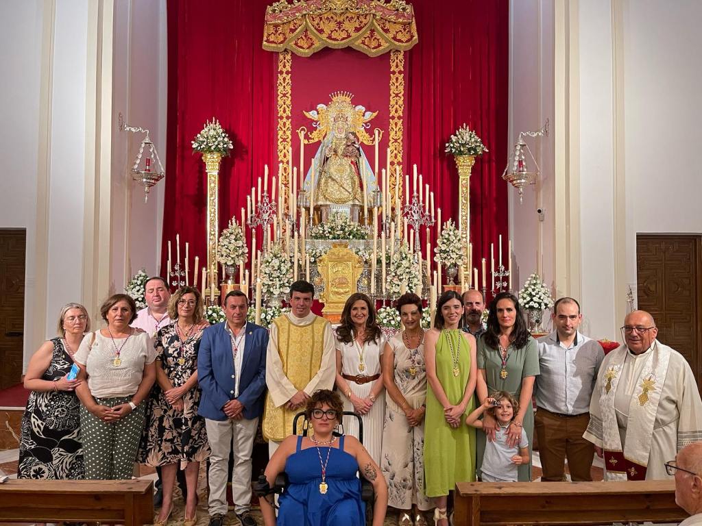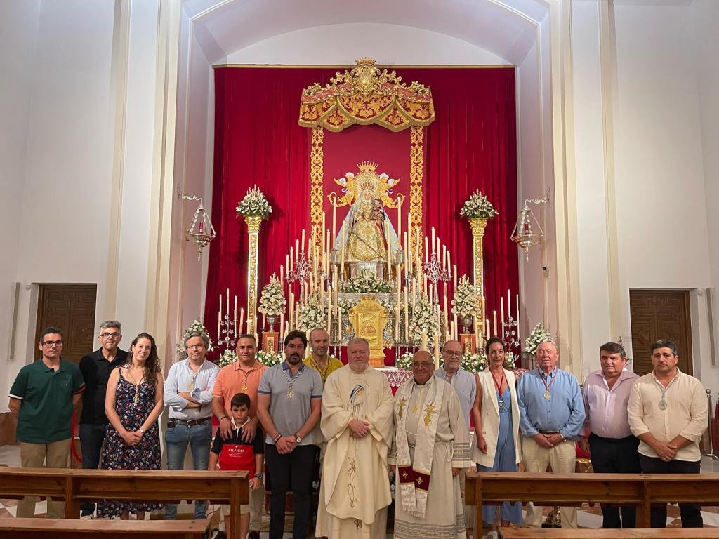 Martes, 8 de agosto, D. José Antonio García Romero, Capellán de la Cofradía, presidío el ejercicio de la novena dedicado a enfermos, pobres, y ONGs solidarias, visitándonos miembros de la Cofradía de Nuestra Señora del Rosario, Patrona de Luque. Posteriormente en la sala de enseres en las dependencias del Santuario, tuvo lugar la convocatoria extraordinaria de los Caballeros Horquilleros para la elección del nuevo decano, siendo este D. José Antonio Vico Vico.