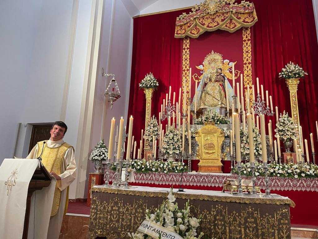 Día 7 de agosto, día dedicado a la Agrupación de Cofradías de Alcaudete y localidades aledañas, conmemorando el XXXV aniversario del nombramiento de la Santísima Virgen de la Fuensanta Coronada como Presidenta de la Agrupación de Cofradías de Alcaudete, predicaba D. Antonio Vela Aranda, Párroco de la parroquia de Santa María de los Alcázares de Úbeda.