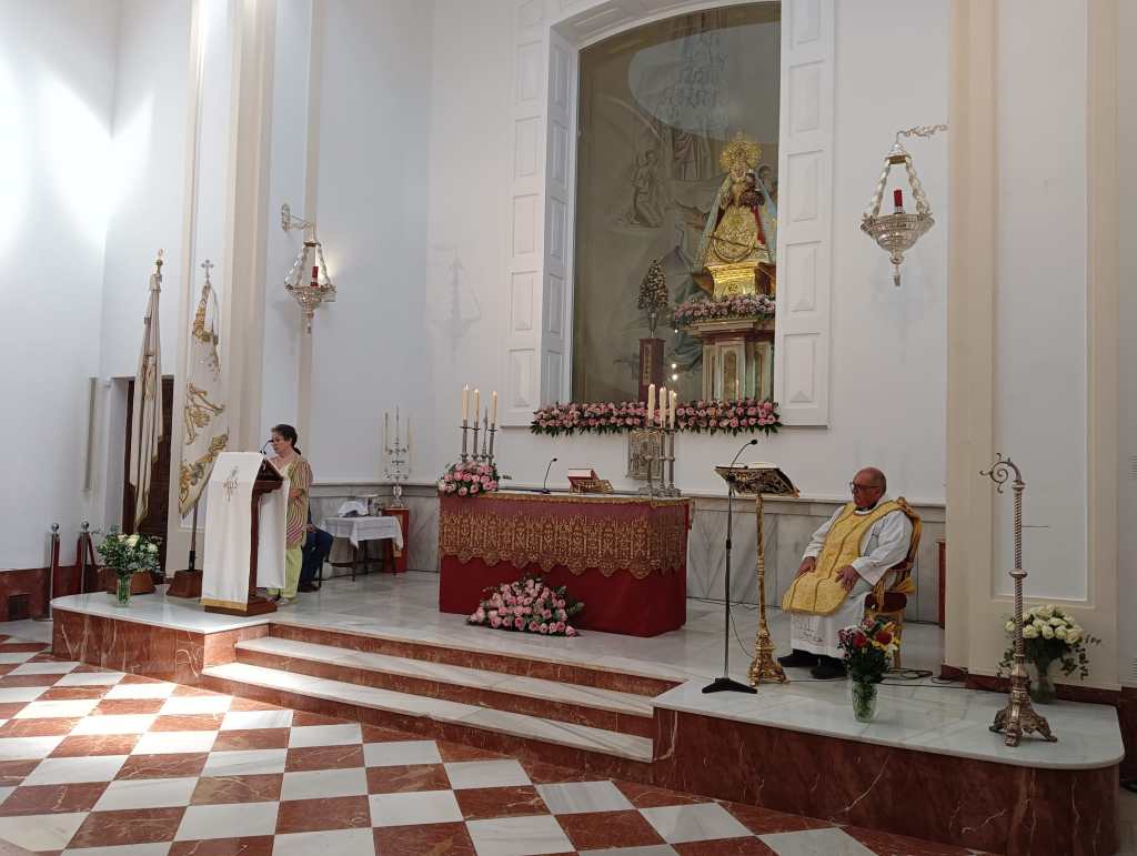 Comenzando la Eucaristía, con el Coro de la Parroquia de Santa María de la localidad de Torredonjimeno, el Capellán de la Cofradía, D. José Antonio García Romero, profundizó en el trabajo silencioso de la gente de Alcaudete, aprendiendo él mismo de ello durante los años que lleva siendo Párroco de la Parroquia de Santa María la Mayor, recordando así el explendoroso día de la Coronación Canónica de la Sagrada Imagen.