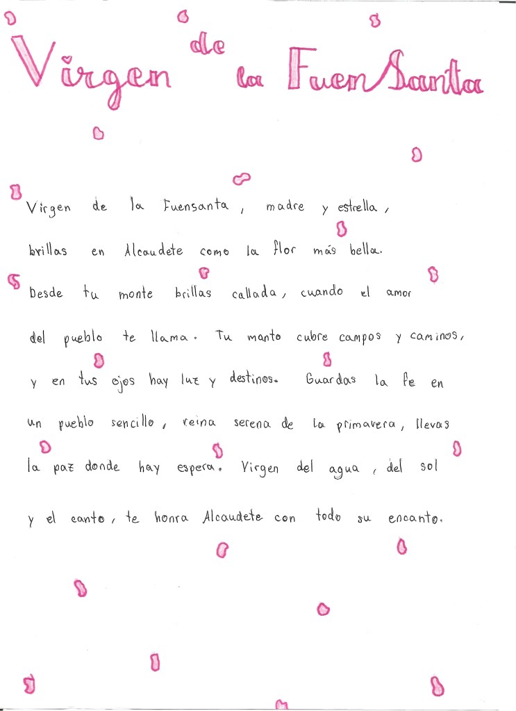 Desde la Junta de Gobierno de la Cofradía de Nuestra Señora la Santísima Virgen de la Fuensanta Coronada damos las gracias a los profesores y alumnos junto con sus padres, que han colaborado para que la devoción a nuestra madre Santísima en la advocación de la Fuensanta cale más aún en los más pequeños del municipio y los guarde bajo su manto.