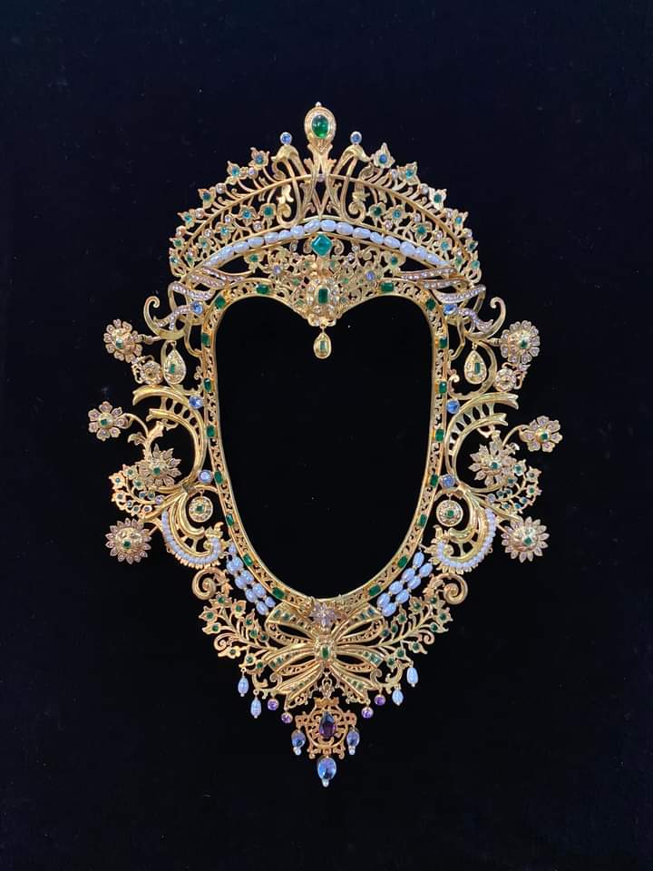 Rostrillo de la Coronación, se trata de una pieza de alta joyería de la casa sevillana “El Toisón” siguiendo las trazas de las joyas denominadas “estilo isabelino”.