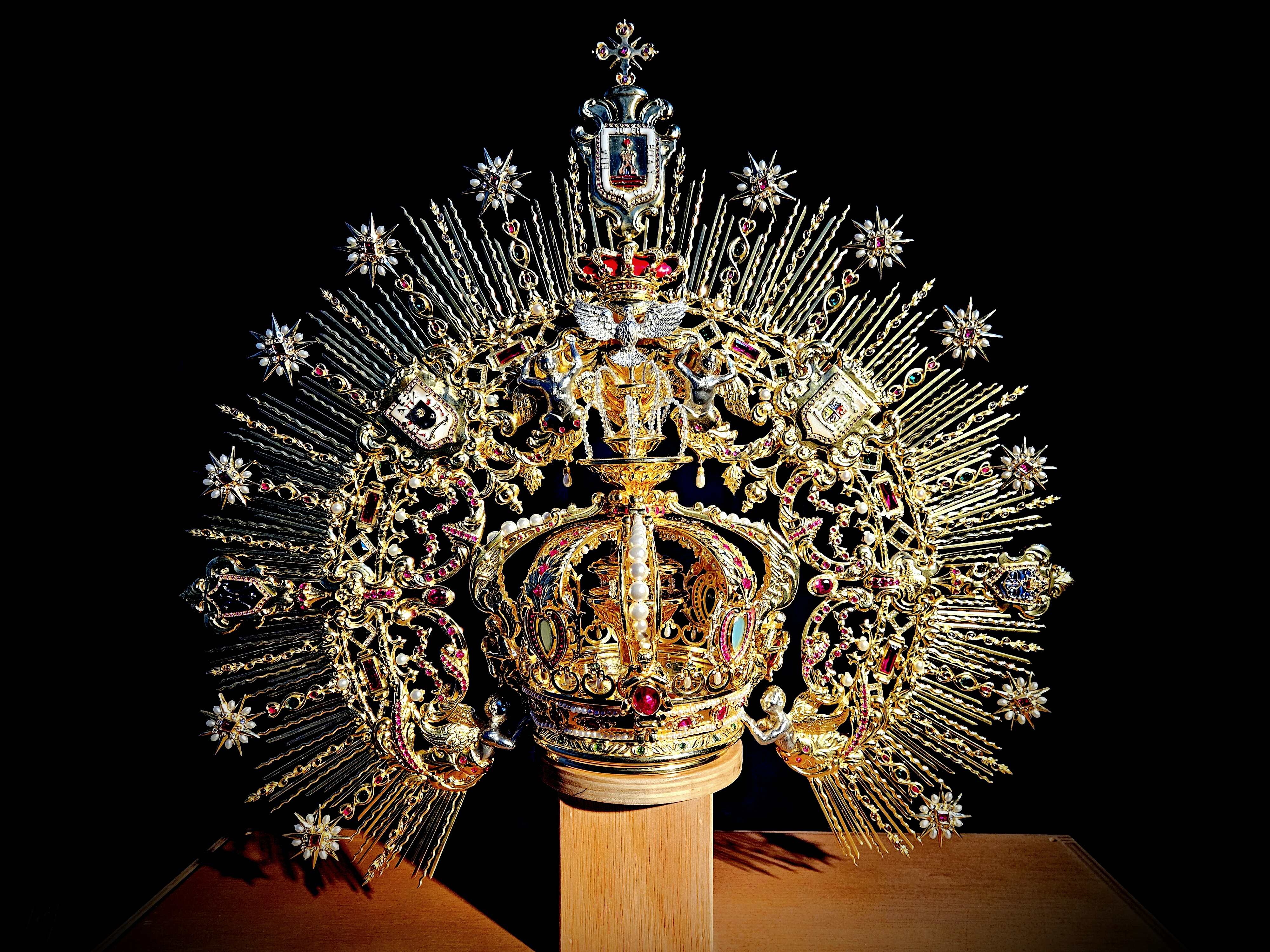 Corona imperial de plata sobredorada regalada a la Virgen por suscripción popular en 1944.