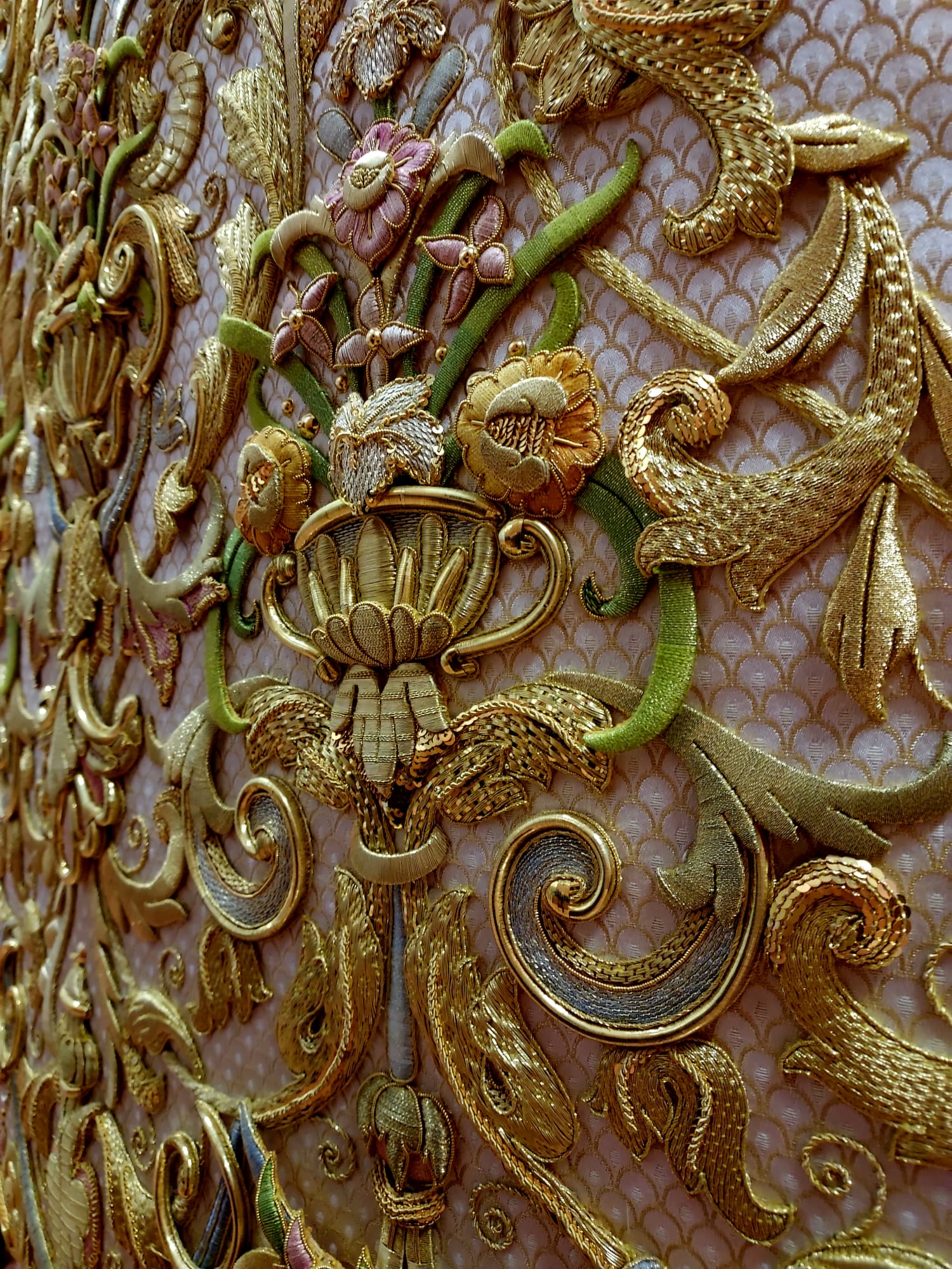 Manto de seda brocado con hilos de oro. Siglo XVIII