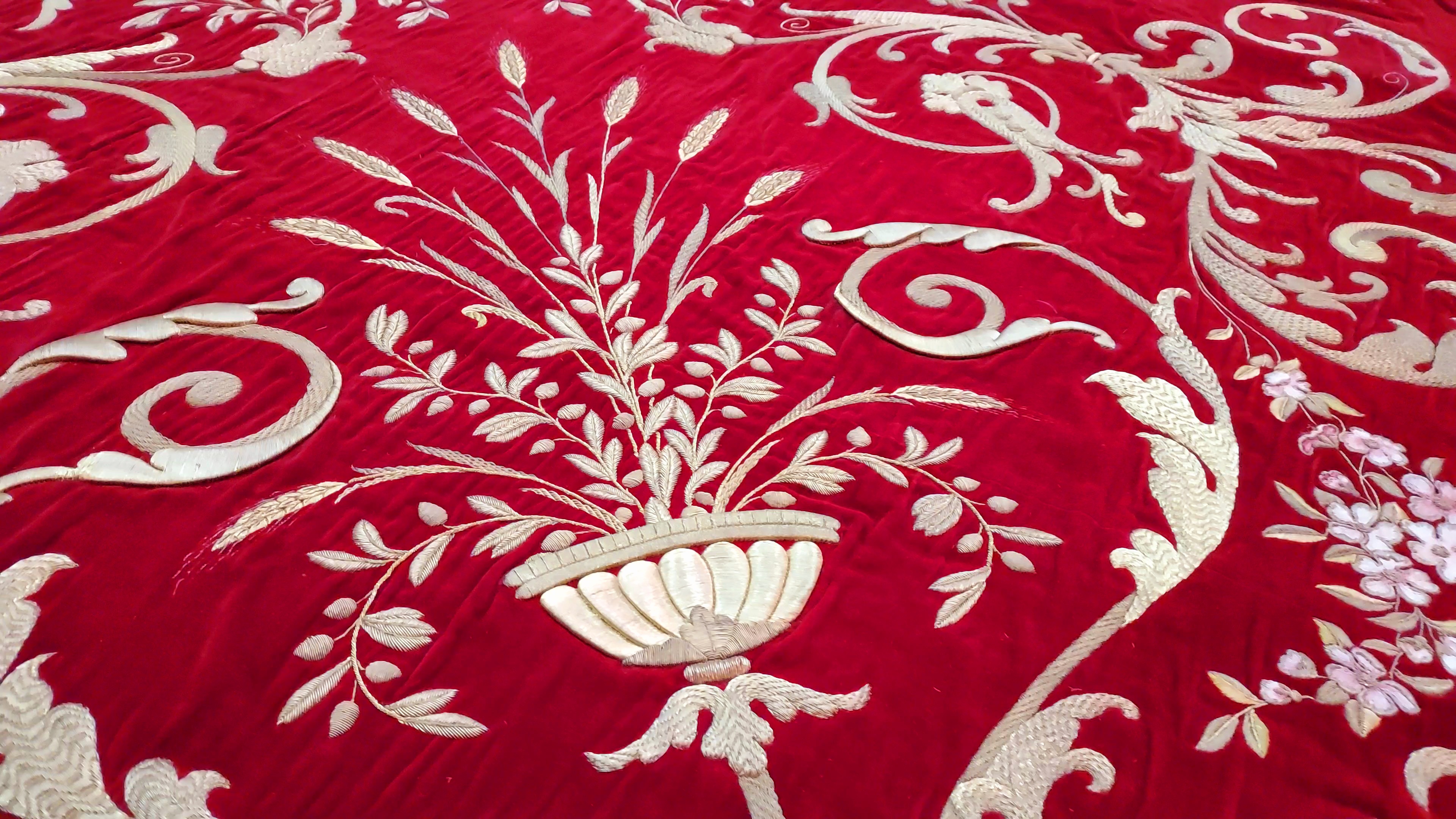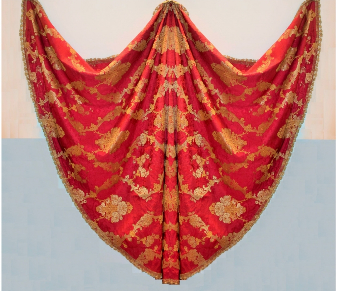 Manto de damasco rojo brocado con hilos de oro. Siglo XIX.